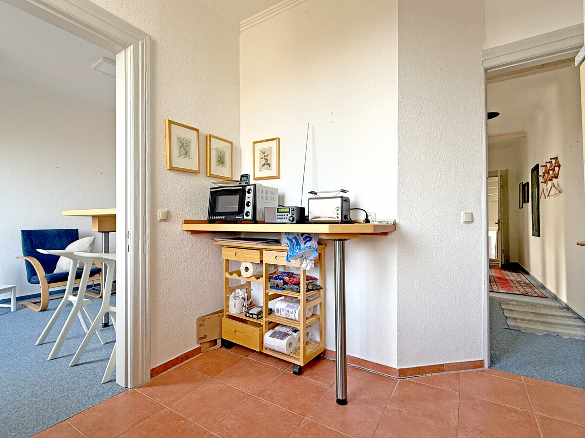 Vom Eingangsbereich führt der Flur als zentrale Achse in alle Räume, wodurch die Wohnung angenehm übersichtlich wirkt. Die Raumaufteilung unterstützt eine flexible Nutzung, etwa mit getrennten Schlaf- und Arbeitsbereichen.