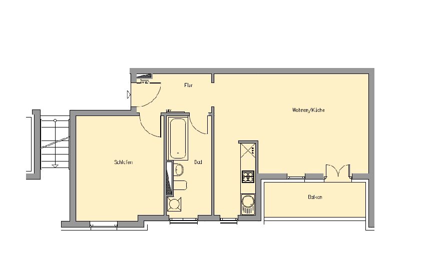 Über den Flur gelangen Sie in den Mittelpunkt der Wohnung: die lichtdurchflutete Wohnküche mit direktem Zugang zum sonnigen Balkon, der zu entspannten Stunden im Freien einlädt – ob beim Frühstück oder beim Abschalten nach einem langen Tag.