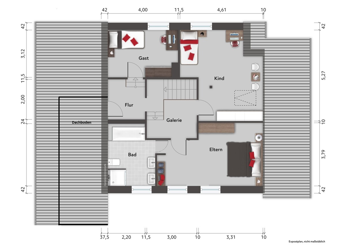 Zwei helle Badezimmer sorgen für Komfort und Flexibilität im täglichen Leben. Die weiteren Zimmer lassen sich individuell als Schlaf-, Kinder-, Gästezimmer oder Homeoffice gestalten und bieten dank guter Belichtung eine angenehme Wohnatmosphäre.