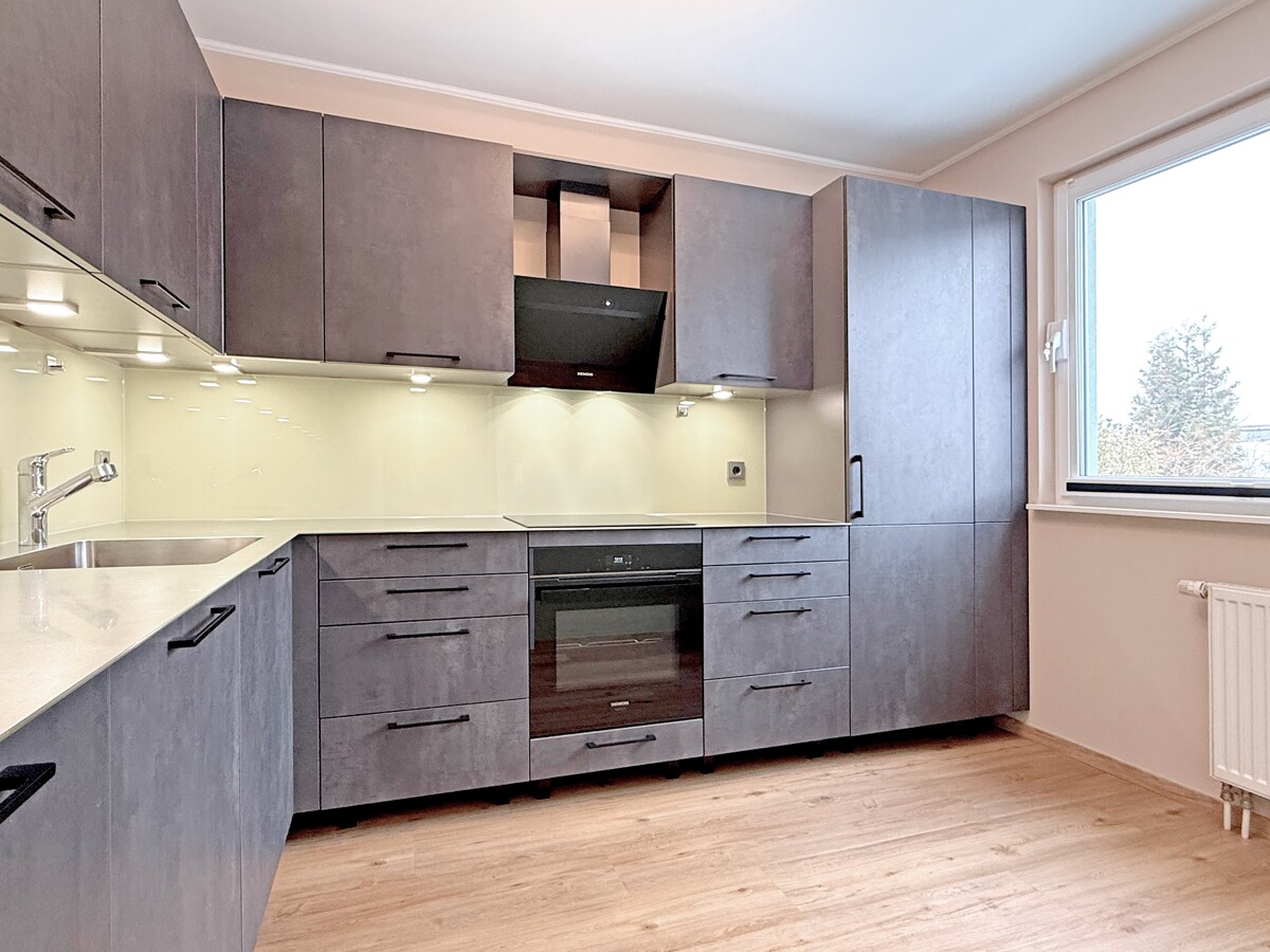Die moderne Küche ist funktional ausgestattet und verfügt über eine hochwertige Edelstahlarbeitsplatte. Ein separater Hauswirtschaftsraum ergänzt das Raumangebot sinnvoll. Zusätzlich steht im Erdgeschoss ein Gäste-WC zur Verfügung, praktisch für Besuch und den Familienalltag.