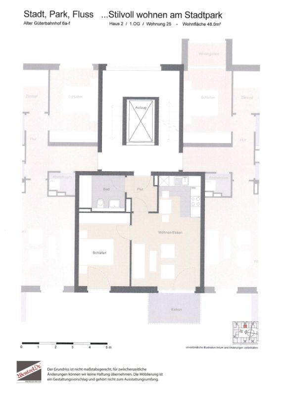 Auf dem Grundstück am Alten Güterbahnhof 6 entstanden insgesamt 89 moderne Mietwohnungen mit 74 Tiefgaragenplätzen. Im autofreien und grünen Innenhof befindet sich ein kleiner Spielplatz. Das Objekt verfügt über max. 4 Stockwerke und liegt in einer ruhigen Nebenstraße. Die vielseitigen Grundrisskonzepte bieten Wohnungen von kompakten 2 Zimmern bis familienfreundlichen 4 Zimmern. Die meisten Wohnungen verfügen über einen Balkon oder eine Terrasse. Die Treppenhäuser sind mit Personenaufzügen ausgestattet, welche einen direkten Zugang in die Tiefgarage und zum Keller ermöglichen.