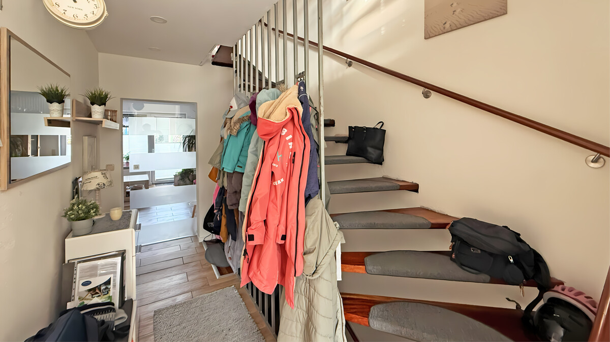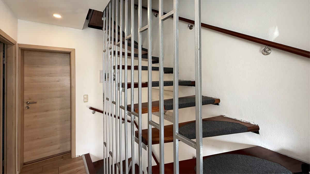 Im 1. Obergeschoss befinden sich ein Schlafzimmer sowie ein modern ausgestattetes Duschbad (2021 Modernisiert) mit großzügiger Walk-In-Dusche. Ein weiterer, großzügiger Bereich wird derzeit als Homeoffice und Spielbereich genutzt und bietet flexible Gestaltungsmöglichkeiten – ob Arbeitszimmer, Leseecke oder zusätzlicher Wohnraum.