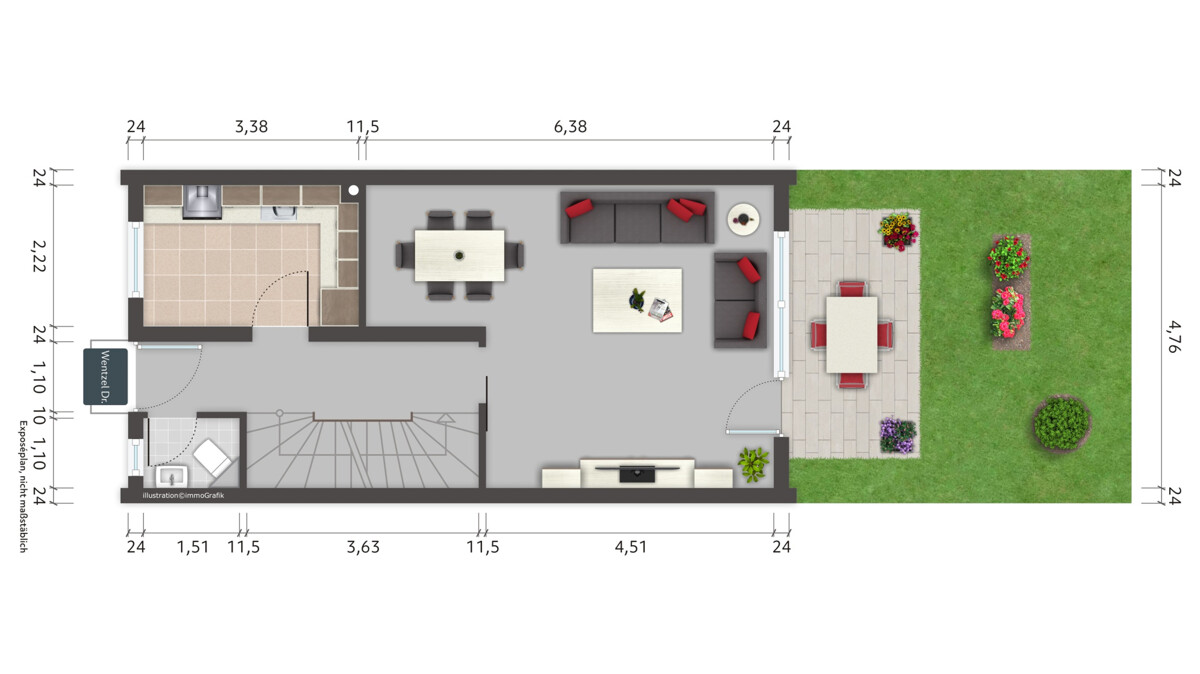 Erdgeschoss – Wohnen mit Gartenanschluss: