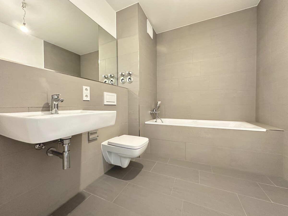 Innen überzeugen die Wohnungen mit angenehmen Grundrissen, die genügend Stauraum und ein Gefühl von Weite vereinen – nicht zuletzt durch die großen Fensterelemente, die für reichlich Tageslicht in Ihren Räumen sorgen. Die Bäder der Wohnungen sind komplett ausgestattet. Mit Elementen und Armaturen namhafter Hersteller wie Kaldewei, Keramag und Hansgrohe starten Sie morgens entspannt in den Tag. Matte Fliesen in sanften Farbtönen machen die Badezimmer wohnlich. Jede Wohnung erhält eine Küchenzeile inklusive Spüle und Marken-Elektrogeräten, damit Sie von Anfang an gesund und lecker essen können. Alle Wohnungen werden über die angenehme Wärme einer Fußbodenheizung beheizt, die sich raumweise regulieren lässt. Neben Fliesen in Bad und Küche kommt in den frei finanzierten Wohnungen ein stilvoller Parkettboden zum Einsatz, in den mietpreisgedämpften Wohnungen wird ein hochwertiger Designfußboden verlegt. Das Wasser wird durch die zentrale Heizanlage erwärmt, die wie auch die Fußbodenheizung über Nahwärme betrieben wird.