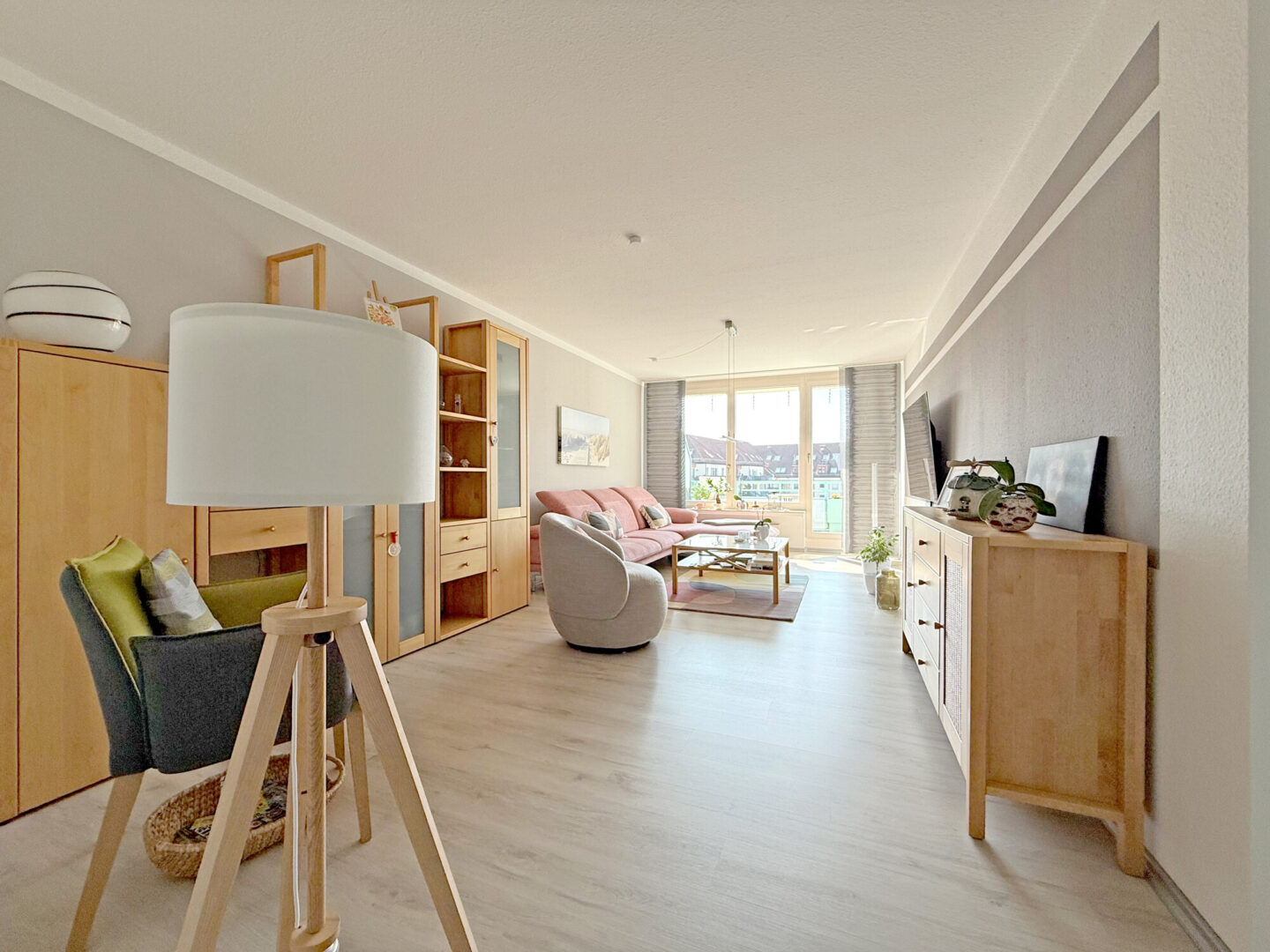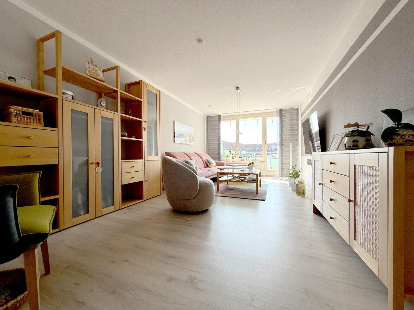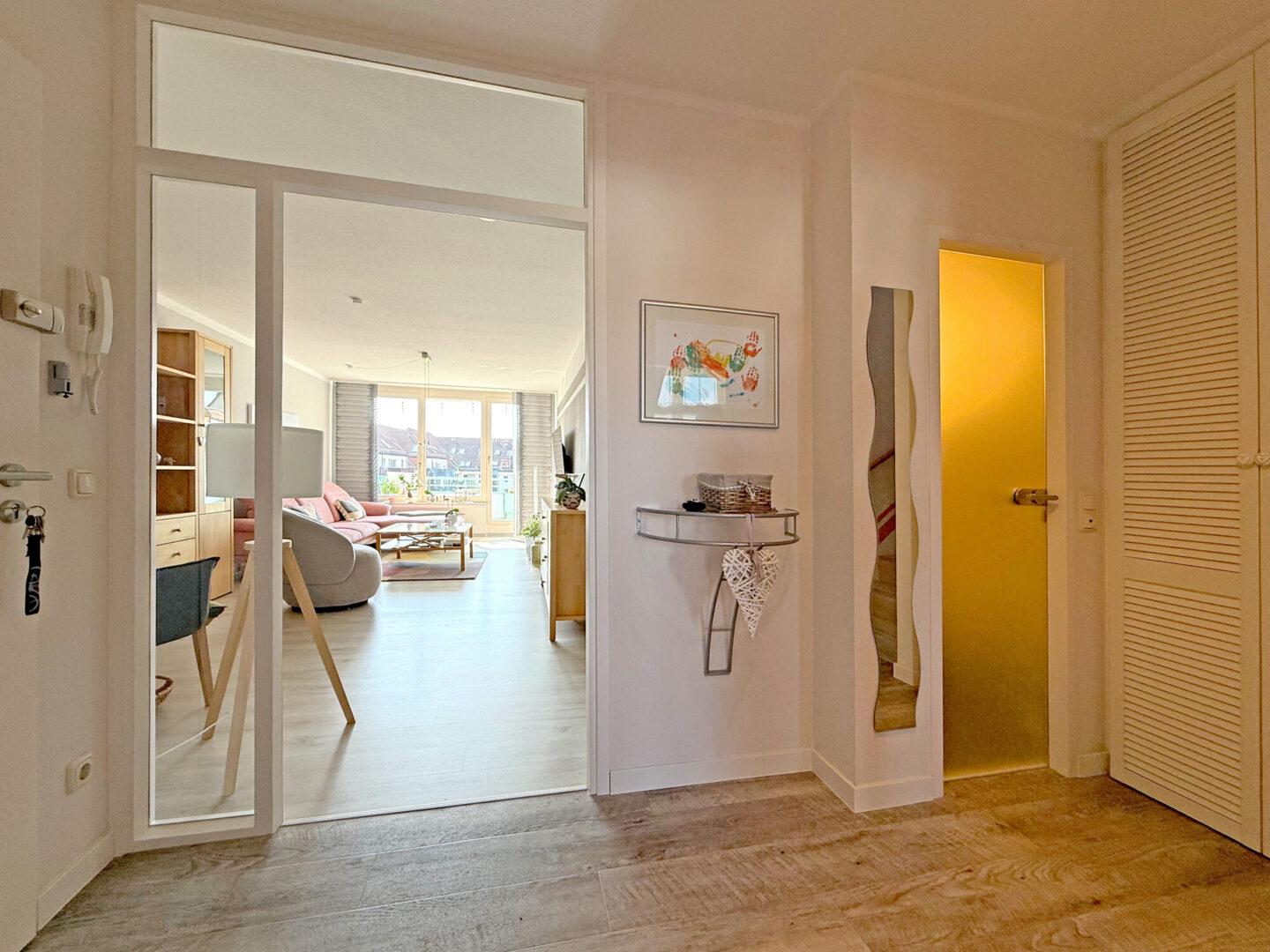 Schon beim Eintreten spürt man die besondere Atmosphäre dieser Wohnung: Lichtdurchflutete Räume, klare Strukturen und ein harmonisches Zusammenspiel aus Funktionalität und Wohnlichkeit.