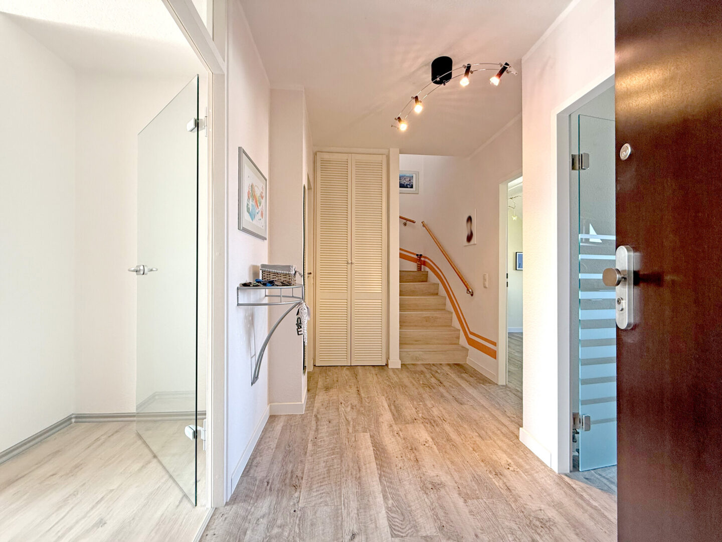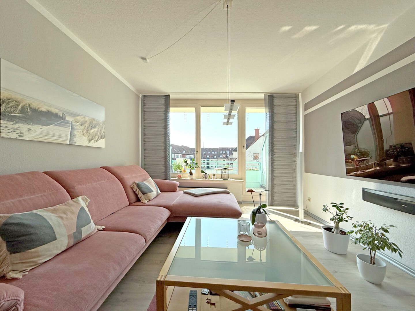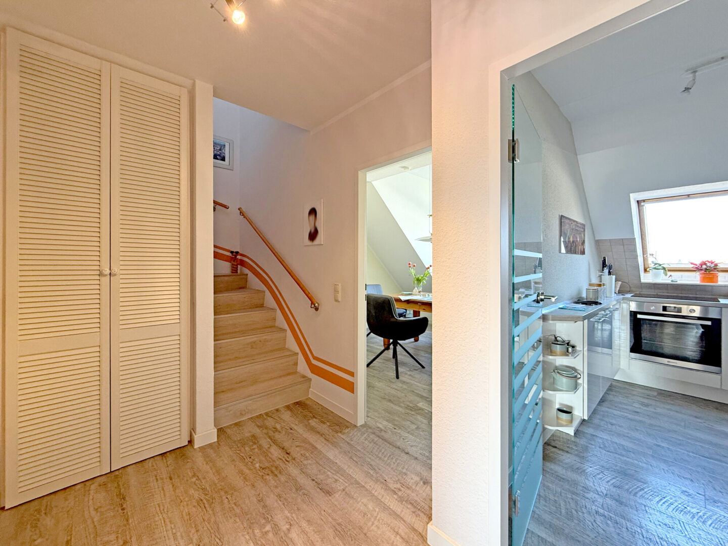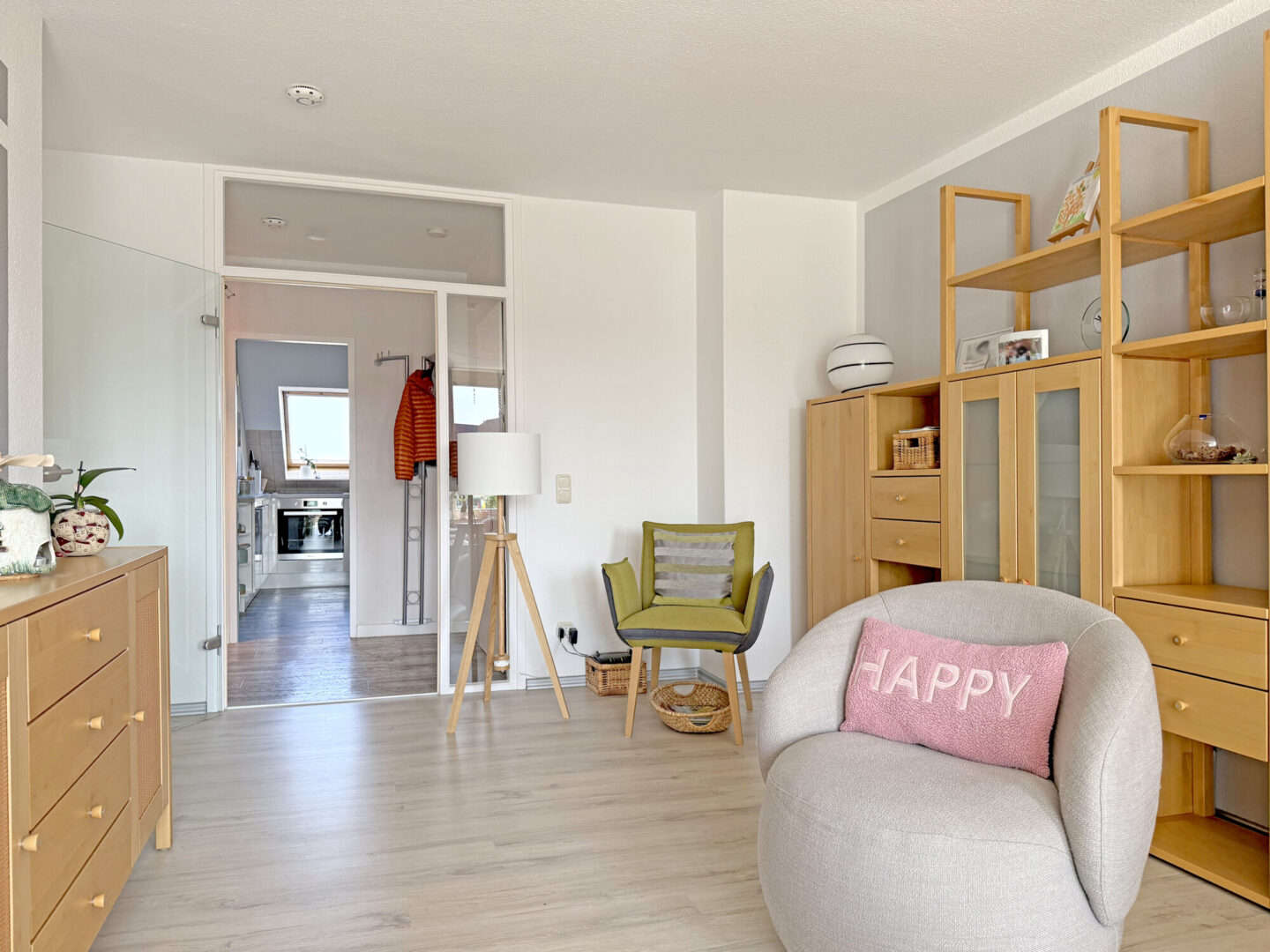 Schon beim Eintreten spürt man die besondere Atmosphäre dieser Wohnung: Lichtdurchflutete Räume, klare Strukturen und ein harmonisches Zusammenspiel aus Funktionalität und Wohnlichkeit.