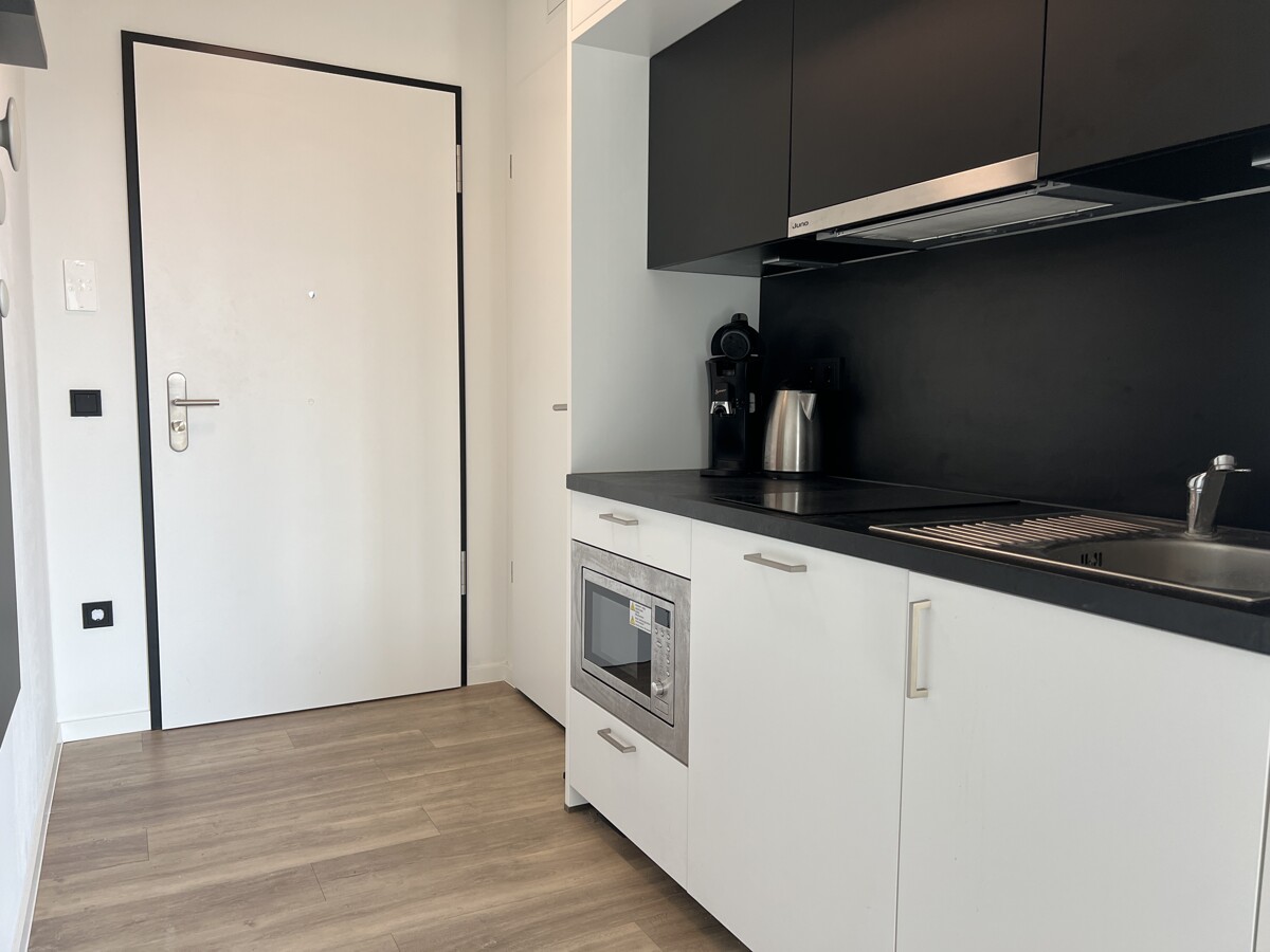 Die integrierte Küchenzeile ist mit allen notwendigen Geräten ausgestattet, darunter ein Kühlschrank, ein Kochfeld, eine Spülmaschine und eine Mikrowelle. Zusätzlich stehen Dir eine Kaffeemaschine, ein Wasserkocher sowie Besteck und Geschirr zur Verfügung – ideal für den direkten Einzug ohne Aufwand.