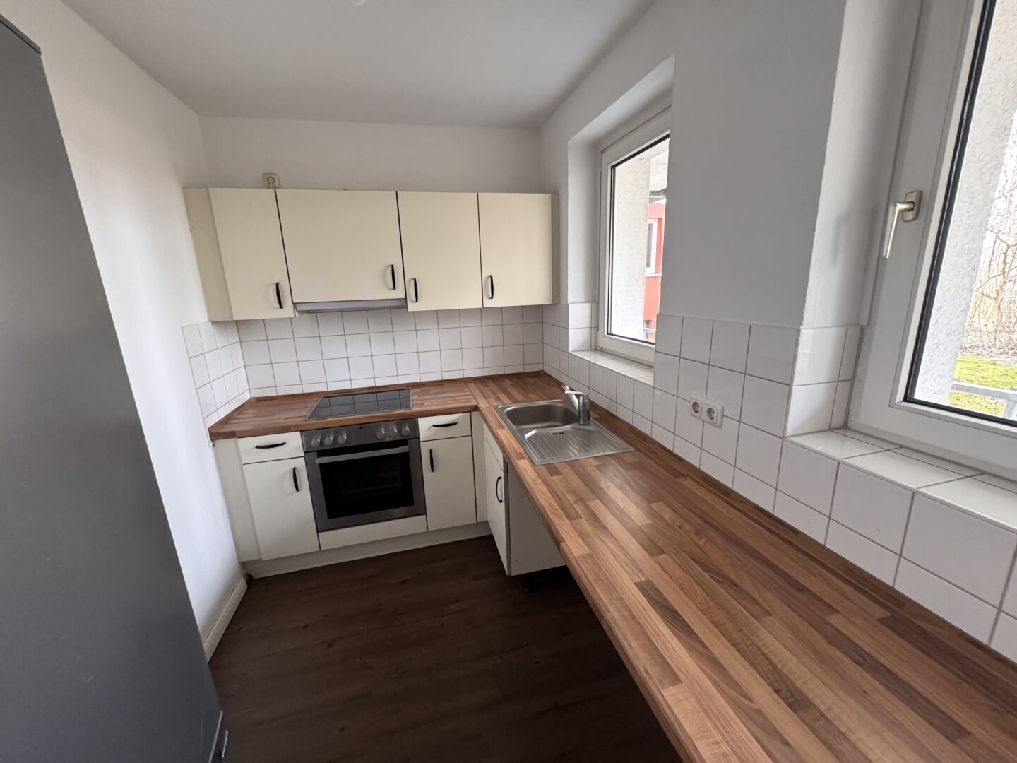 Eine praktische Einbauküchenzeile mit Herd, Backofen und Spüle wird zur Nutzung überlassen. Zudem ist ausreichend Platz für eine Waschmaschine vorhanden.