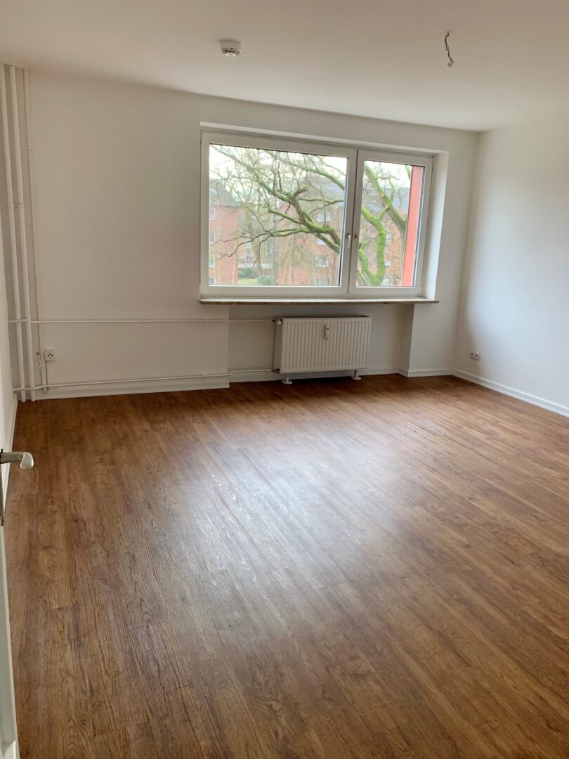 In den Wohn- und Schlafräumen ist ein Laminatboden verlegt und besticht durch die Helligkeit aufgrund vieler Fenster. Der Flur ist mit einem Wandschrank ausgestattet und gelangt von dort aus ins Badezimmer inkl. Dusche und Fenster, dem Wohnzimmer sowie und der Küche.