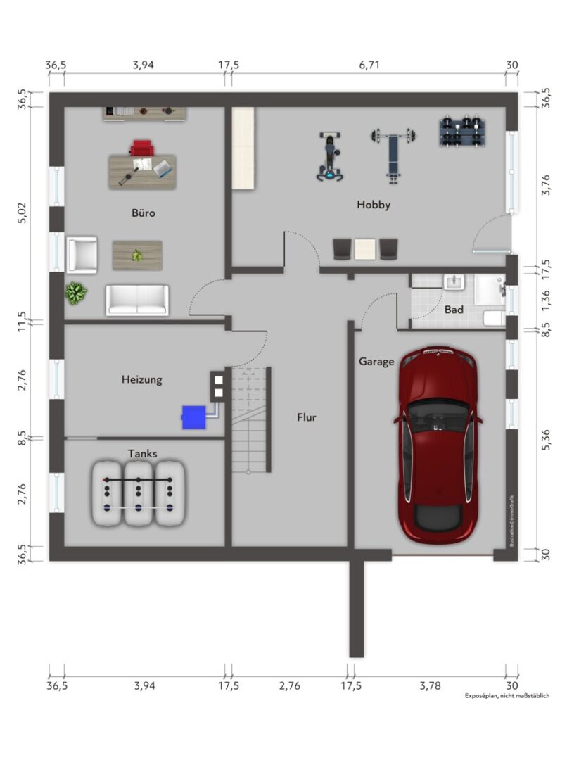 Weitere Bereiche befinden sich im Kellergeschoss und erweitern die Nutzfläche um rund 100 m². Zusätzliche Räume, die je nach Bedarf als Stauraum, Hobby- oder Arbeitsbereich nutzbar sind. Ein weiteres, einfach gehaltenes Bad befindet sich ebenfalls hier.