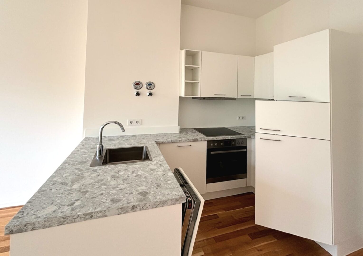 Diese attraktive 2-Zimmer-Wohnung befindet sich in einer begehrten Lage und ist Teil eines modernen Wohnhauses, das im Jahr 2019 erbaut wurde. Der im Gebäude vorhandene Aufzug, der bis in den Keller fährt, sorgt für einen barrierefreien Zugang zu allen Etagen und somit auch zur Wohnung. Mit einer Wohnfläche von ca. 57 m² bietet die Wohnung ausreichend Platz für individuelle Wohnträume. Das Herzstück der Wohnung ist das großzügige Wohnzimmer, das durch seine offene Gestaltung und den direkten Zugang zur Terrasse besticht. Die moderne Einbauküche ist voll ausgestattet und fügt sich nahtlos in den Wohnbereich ein, was den Raum ideal für gesellige Abende mit Familie und Freunden macht. Zusätzlich zum Wohnzimmer umfasst die Wohnung ein weiteres Zimmer, welches als Schlafzimmer genutzt werden kann. Alle Zimmer verfügen über große Fenster, die für viel Tageslicht sorgen und eine angenehme Atmosphäre schaffen. Das Badezimmer ist modern und geschmackvoll gestaltet und mit einer Dusche ausgestattet. Alle Fenster verfügen über elektrischen Rollläden, die für zusätzliche Behaglichkeit und Sicherheit sorgen. Zur Wohnung gehört ein Kellerabteil. Im Hof steht den Bewohnern ein Fahrradschuppen zur Verfügung. Zudem kann ein Tiefgaragenstellplatz optional angemietet werden, sodass auch das Parken komfortabel und sicher geregelt ist.