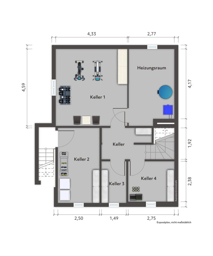 Zusätzliche Nutzfläche bietet der Keller, der Stauraum und Ordnung unterstützt und damit die Wohnräume spürbar entlastet. Das Grundstück umfasst ca. 355 m² und umrahmt Haus und Garten in einer angenehm privaten Dimension.