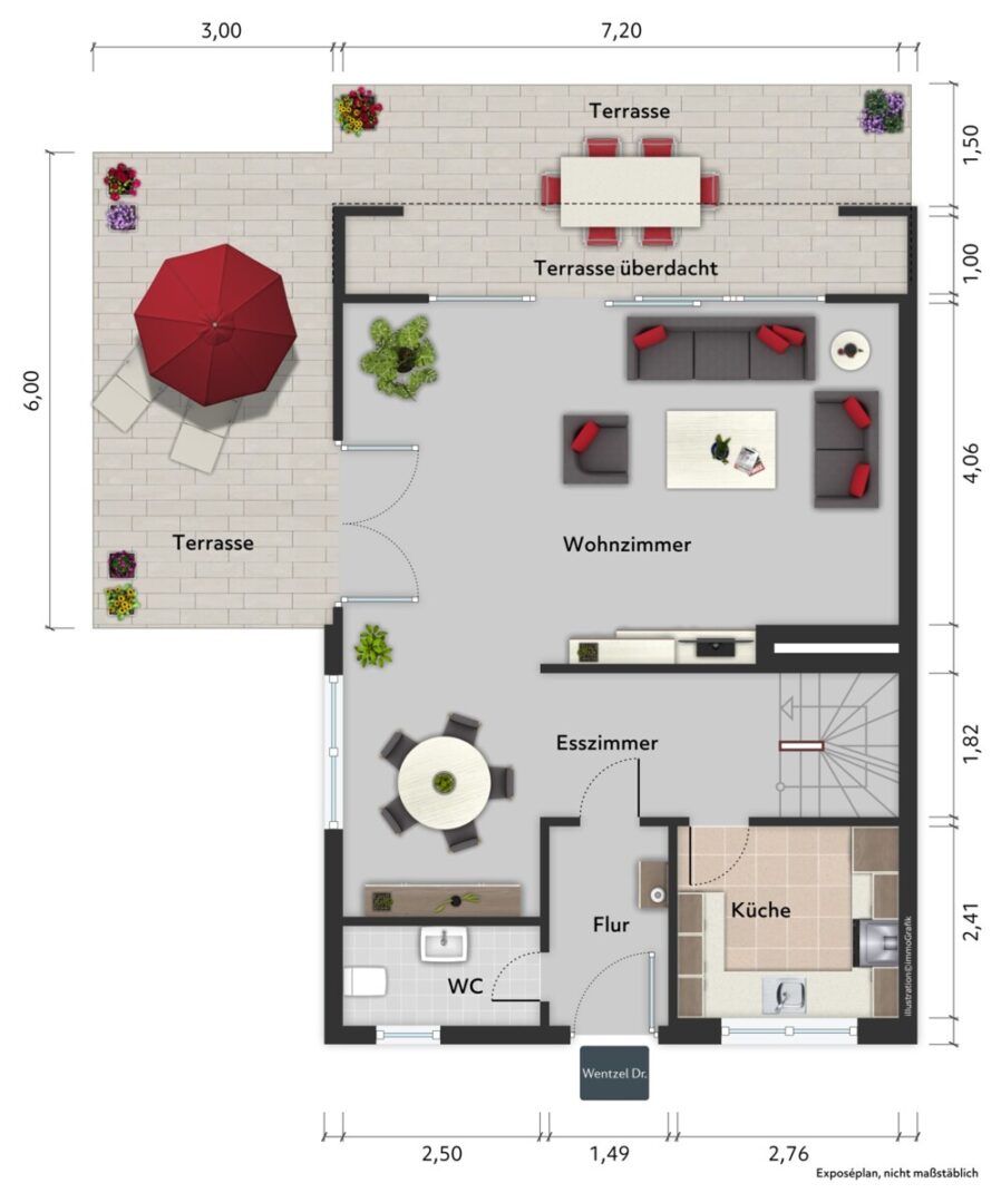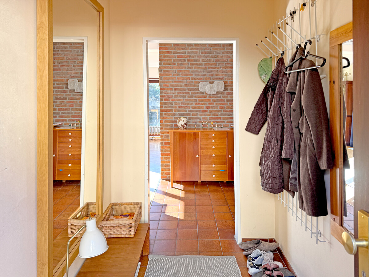 Auf rund 130 m² Wohnfläche verteilen sich 5 Zimmer, die sowohl gemeinschaftliche Momente als auch Rückzugsmöglichkeiten stimmig abbilden. Bereits im Eingangsbereich wirkt das Haus geordnet und einladend, mit Platz für Garderobe und den täglichen Ankommensrhythmus. Von hier aus erschließt sich auch das Gäste-WC.