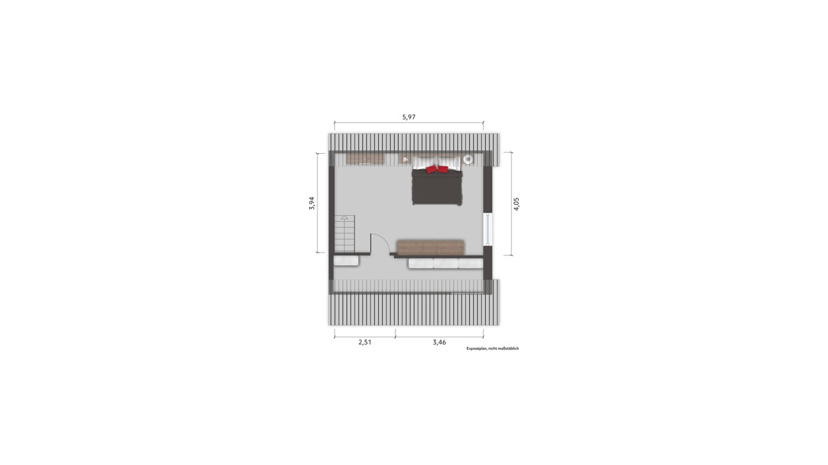 Das Obergeschoss ist Nutzfläche zu wohnlichen Zwecken ausgebaut und bietet mit ca. 19,70 m² flexible Möglichkeiten: ob Schlaf-, Arbeits- oder Hobbybereich, hier lässt sich der Raum nach individuellen Bedürfnissen gestalten.