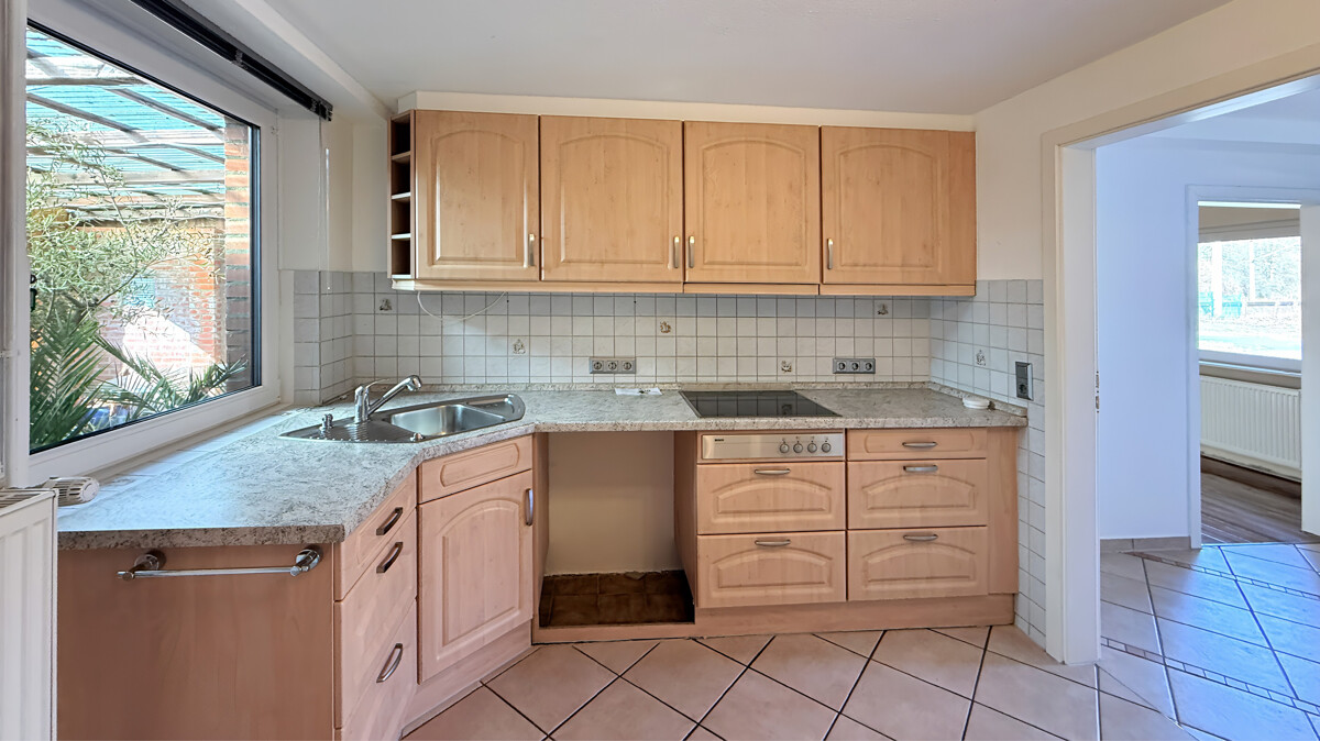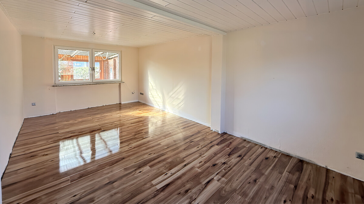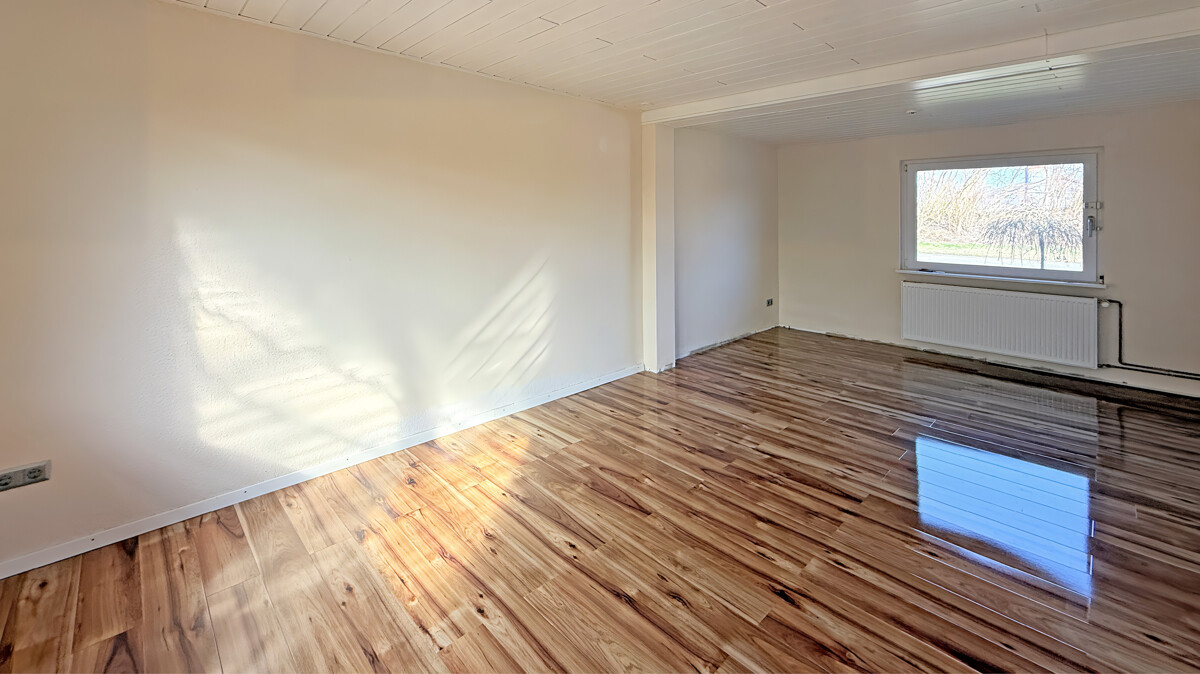 Die Immobilie überzeugt durch einen individuellen Grundriss und Gestaltungspotenzial auf insgesamt ca. 85 m² Wohn- und Nutzfläche (ca. 65 m² Wohnfläche im Erdgeschoss + ca. 20 m² Nutzfläche im Obergeschoss). Das helle Wohnzimmer bildet das Herzstück des Hauses und lädt zu gemütlichen Stunden ein. Vom Flur aus gelangen Sie in den Durchgangsbereich zur Küche, die als zentraler Verbindungspunkt des Hauses dient. Angrenzend erreichen Sie das Badezimmer mit bodengleicher Dusche sowie die überdachte Terrasse im Wintergartenstil (nicht beheizt). Die offene und durchdachte Raumaufteilung sorgt für ein harmonisches Wohngefühl und vielseitige Nutzungsmöglichkeiten – ideal für geselliges Wohnen.