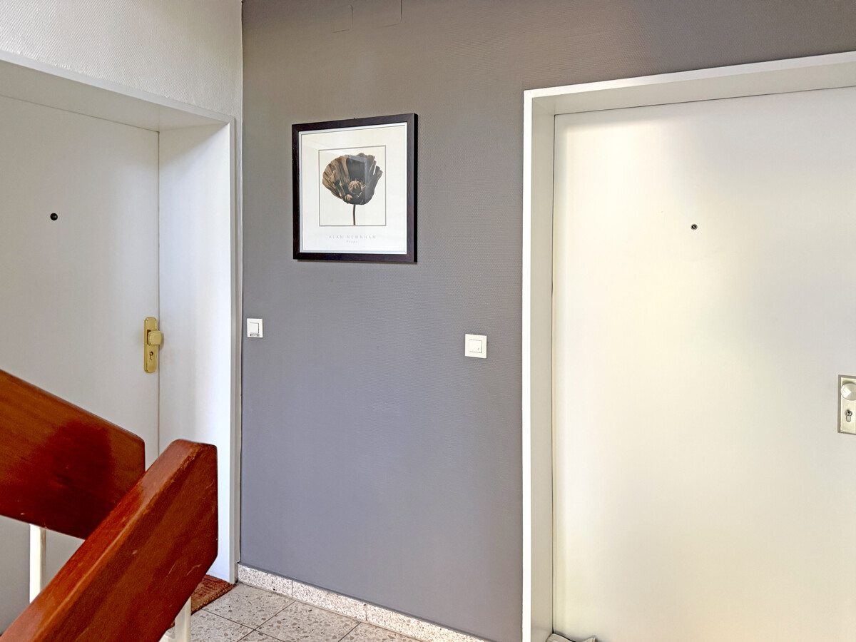 Der Eingangsbereich empfängt Sie mit einem kompakten, gut nutzbaren Zuschnitt, der Wege kurz hält und den Alltag organisiert wirken lässt. Von hier aus erschließen sich die Räume in einer stimmigen Abfolge, sodass Wohnen und Rückzug klar voneinander getrennt bleiben.
