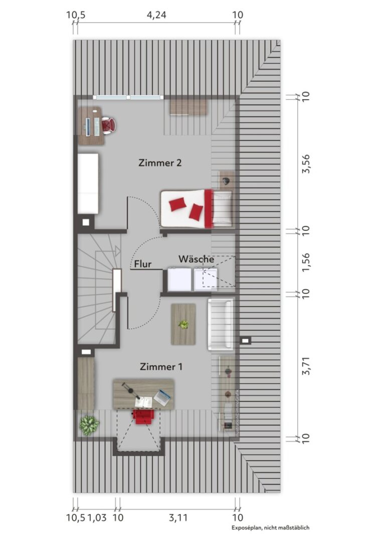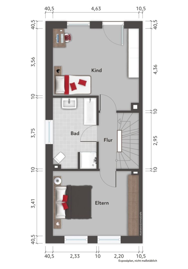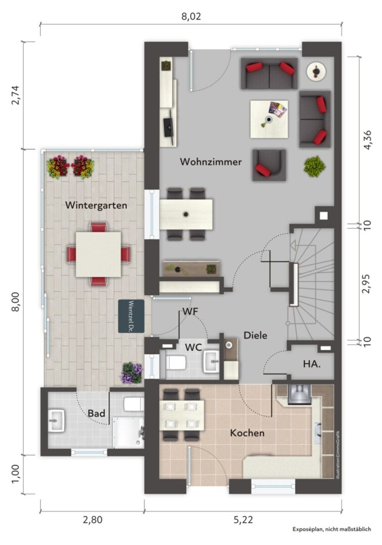 Die Raumaufteilung mit sechs Zimmern eröffnet spürbar flexible Nutzungsmöglichkeiten, etwa für Kinderzimmer, Homeoffice oder ein separates Gästezimmer. Dadurch lässt sich das Haus gut an unterschiedliche Lebensphasen anpassen, ohne dass der Wohnfluss an Klarheit verliert. Die vorhandene Grundstücksfläche von 341 m² ergänzt das Raumangebot um einen privaten Außenbereich, der sich je nach Bedarf gestalten lässt.
