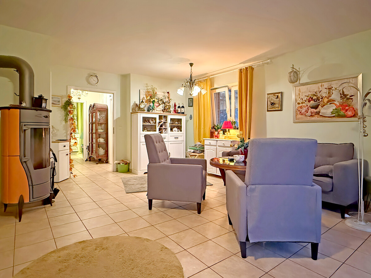 Im Inneren empfängt Sie ein Wohnzimmer mit einem freistehenden Kamin. Von hier aus verlaufen die Wege im Haus klar und bringen Struktur in den Alltag. Die Treppe ist direkt angebunden, sodass die Etagen schnell und unkompliziert erreichbar sind.