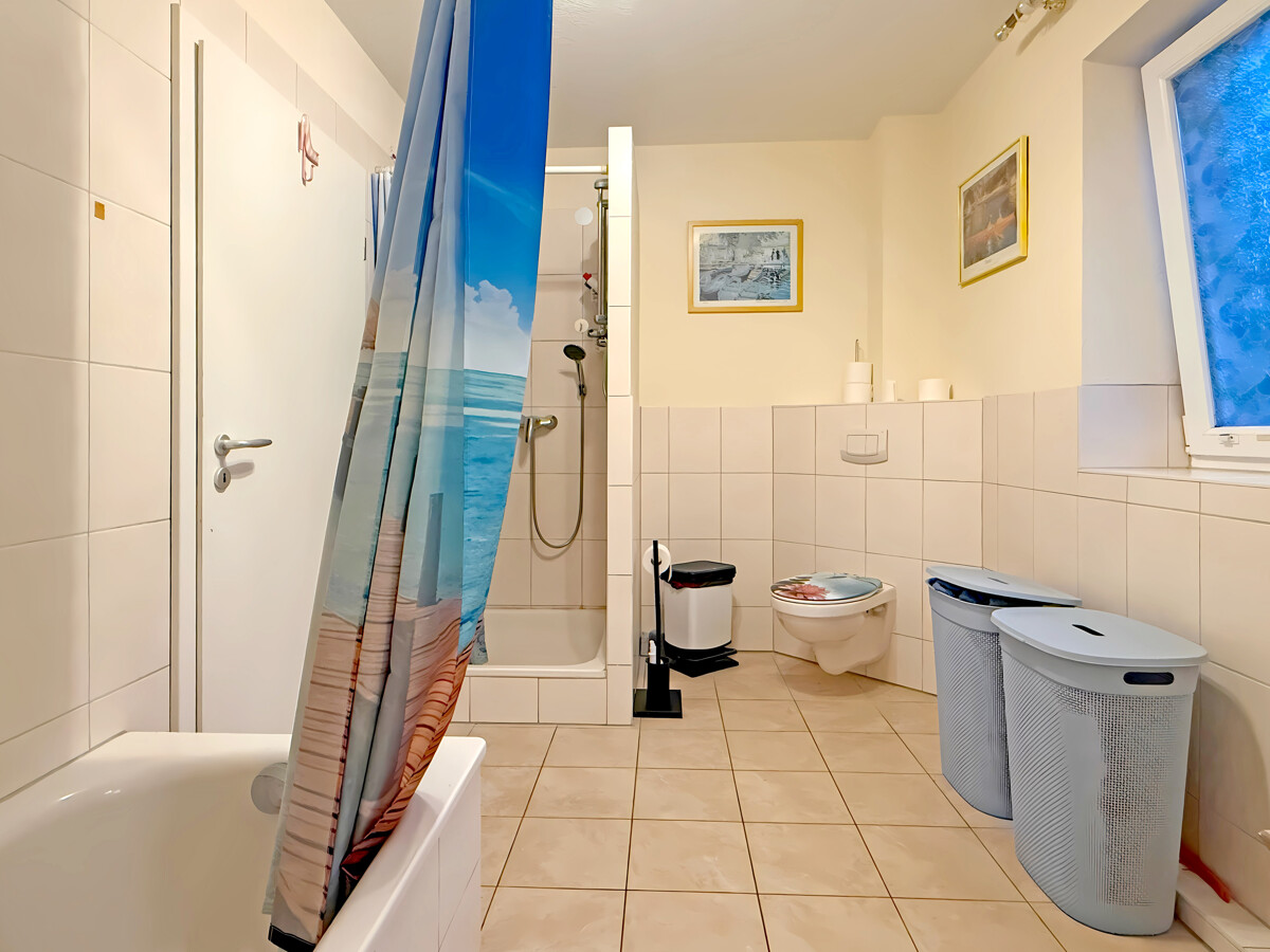 Die Badezimmer zeigen sich in einer zeitlosen ruhigen Gestaltung mit großformatigen und hellen Wandgestaltungen. Im EG verfügt das Badezimmer über eine Dusch und im OG zusätzlich zur Dusche auch noch über eine Badewanne. Jeweils ein Fenster sorgt für angenehme Belichtung und natürliche Lüftung, was den täglichen Ablauf spürbar komfortabel macht.