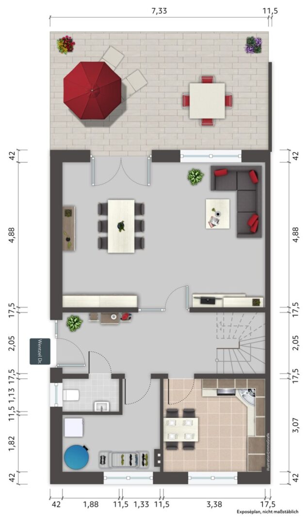 Diese Doppelhaushälfte aus dem Baujahr 2010 überzeugt durch ihre klare Architektur, ein durchdachtes Raumkonzept und einen Garten, der den Wohnraum auf angenehme Weise erweitert.