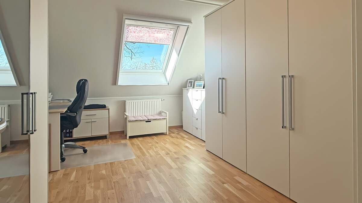 Die flexible Raumaufteilung bietet vielfältige Nutzungsmöglichkeiten – ob Homeoffice, Gästezimmer oder Hobbyraum, hier lassen sich unterschiedlich
