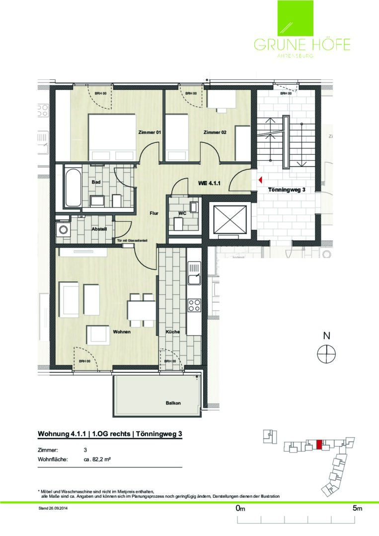 Auf dem großzügigen Grundstück in der Otto-Siege-Straße/Tönningweg entstanden insgesamt 103 moderne Mietwohnungen mit Tiefgaragen- und Außenstellplätzen. Das Objekt liegt in einer ruhigen Anliegerstraße. Im autofreien und grünen Innenhof befindet sich ein großer Spielplatz. Die vielseitigen Grundrisskonzepte bieten Wohnungen von kompakten 2 Zimmern bis familienfreundlichen 4 Zimmern. Alle Wohnungen verfügen über eine Terrasse, einen Balkon oder eine Dachterrasse. Die Treppenhäuser sind mit Personenaufzügen ausgestattet, welche einen direkten Zugang in die Tiefgarage und die Kellerräume ermöglicht. Die Gegensprechanlangen der Wohnungen verfügen über Kameras. Zudem steht ein großzügiger Fahrradkeller für die Mieter zur freien Verfügung. Das Zentrum von Ahrensburg ist vom Objekt aus in wenigen Minuten erreichbar.