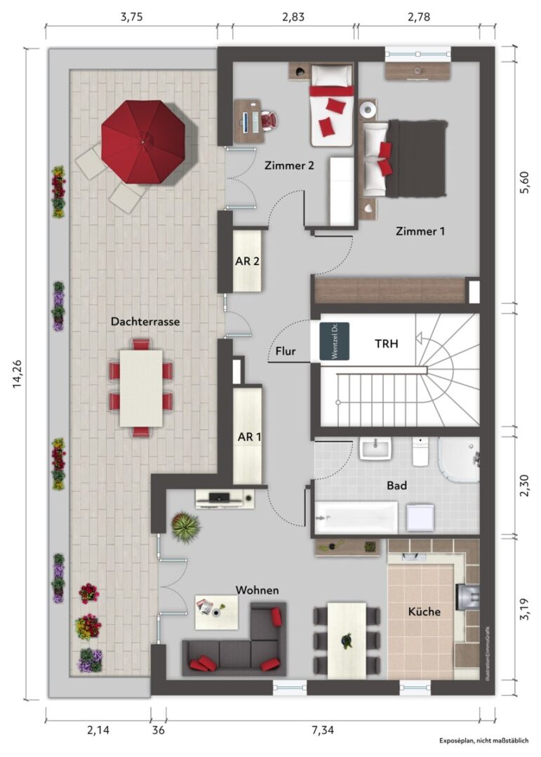 Neuwertige 3-Zimmer-Wohnung mit Dachterrasse und Stellplatz in Hamburg-Allermöhe – Wentzel Dr.