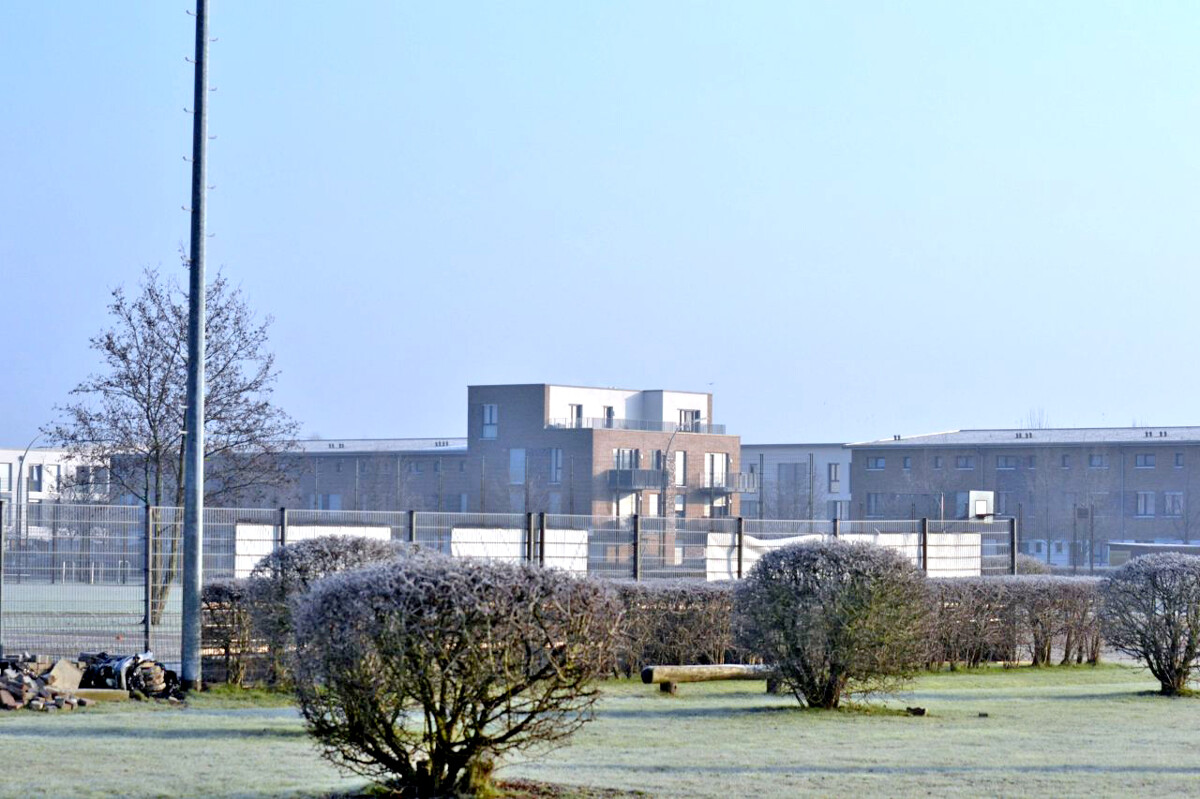 Die Wohnung liegt in einem gewachsenen Wohnquartier mit ruhigem, familienfreundlichem Charakter. Die Umgebung wirkt angenehm aufgeräumt und wird durch Grünzüge und kleine Freiflächen aufgelockert, sodass sich der Alltag hier oft ein Stück entspannter anfühlt.