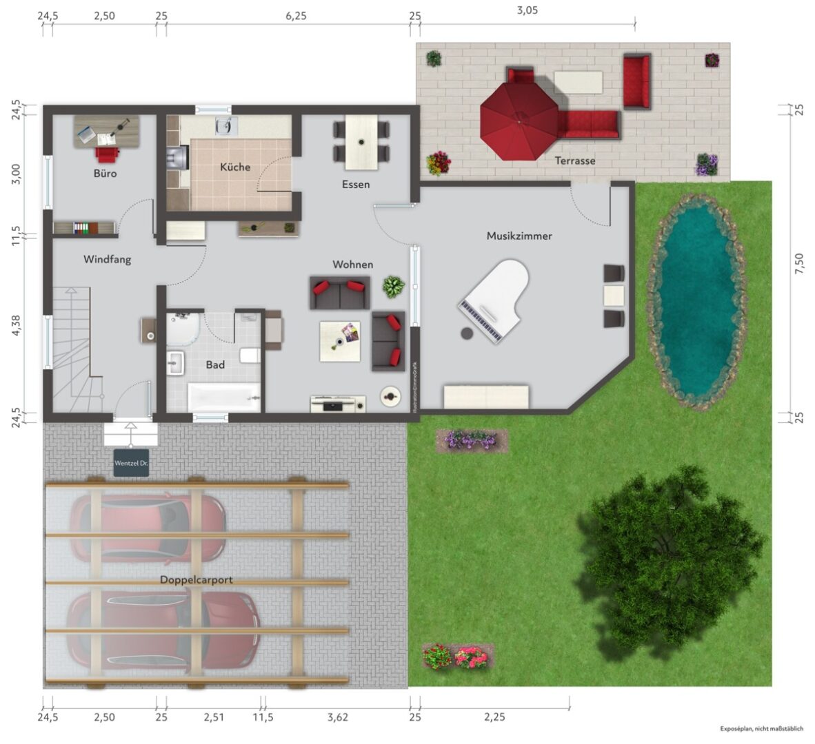 Dieses Einfamilienhaus verbindet eine klare, familienfreundliche Raumaufteilung mit einem außergewöhnlich großzügigen Grundstück und einem Wintergarten als ruhigem Mittelpunkt.