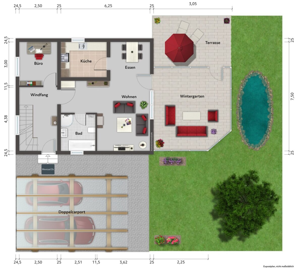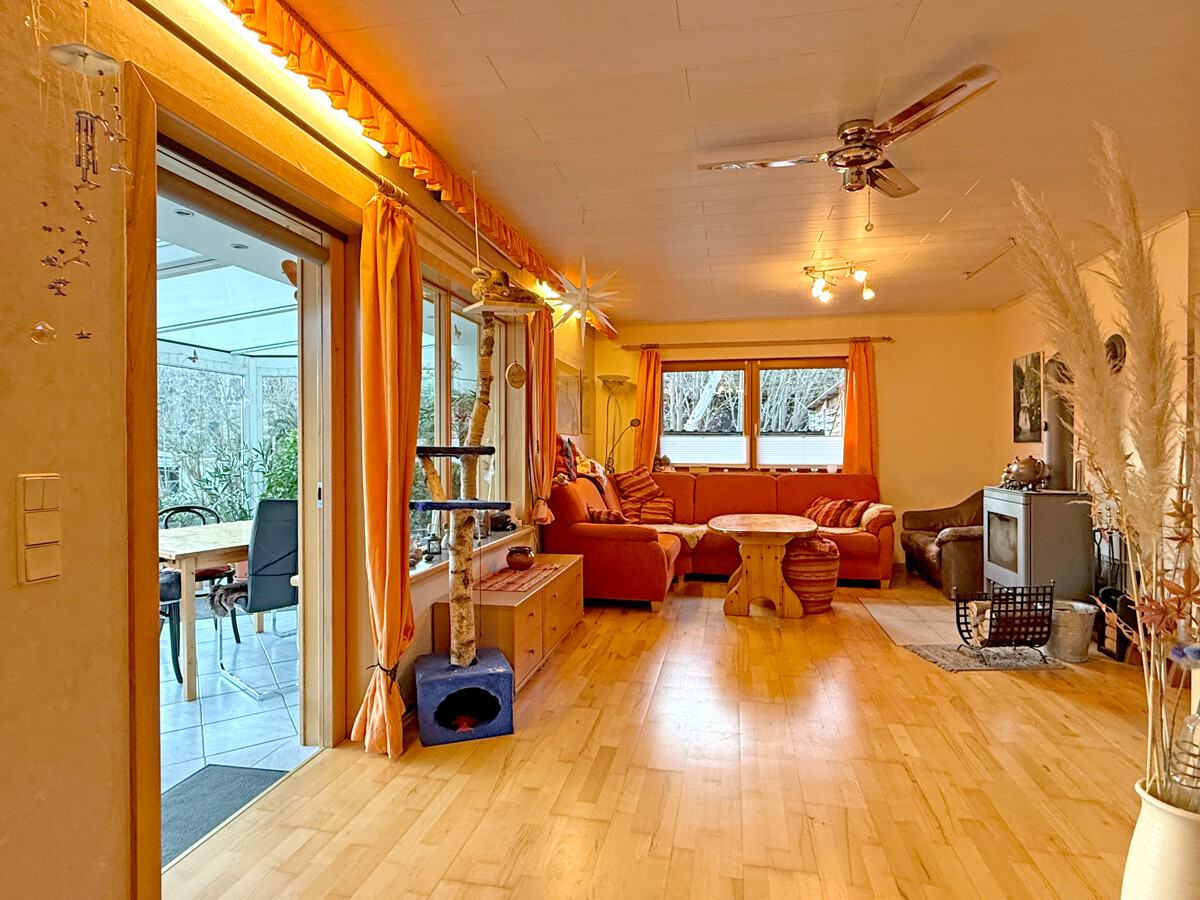 Dieses Einfamilienhaus verbindet eine klare, familienfreundliche Raumaufteilung mit einem außergewöhnlich großzügigen Grundstück und einem Wintergarten als ruhigem Mittelpunkt.