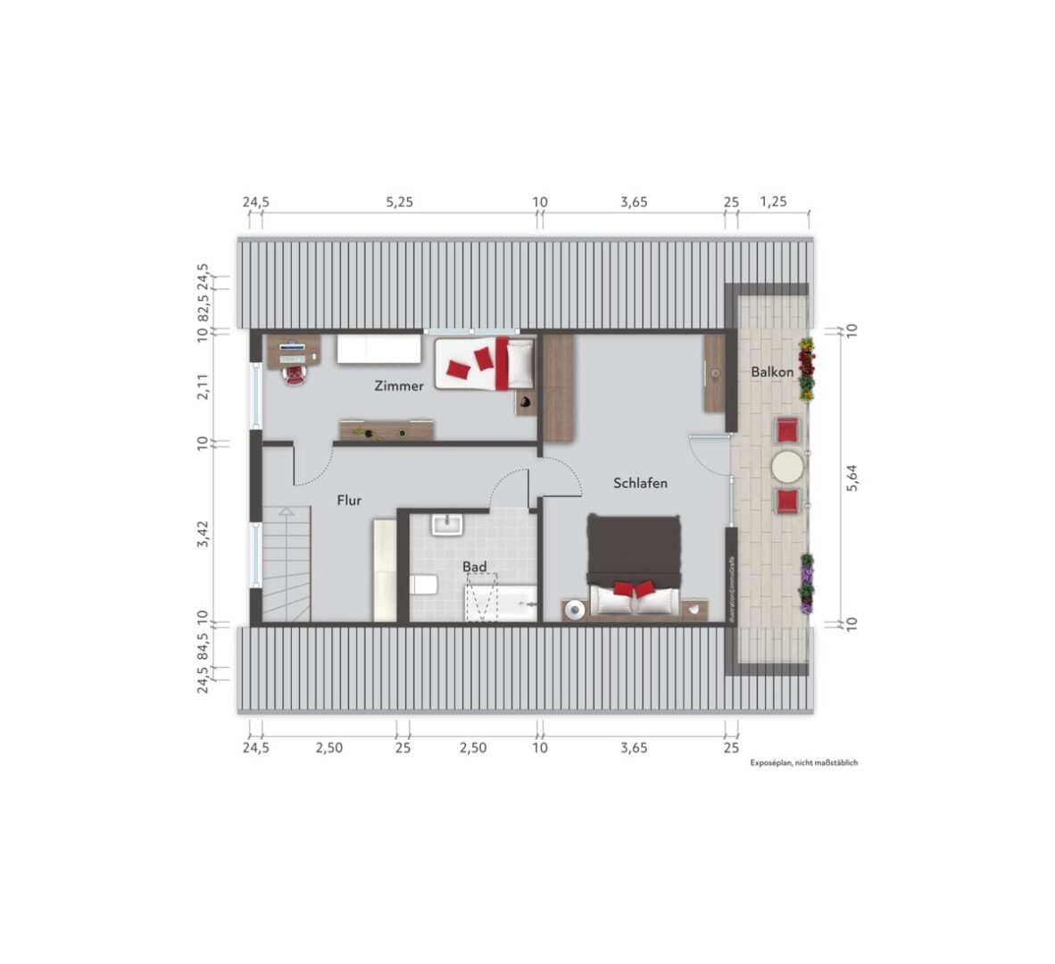 Mit insgesamt 4 Zimmern lassen sich Schlafräume, Kinderzimmer und ein separates Arbeits- oder Gästezimmer gut abbilden. Der Balkon ergänzt das Raumangebot um einen weiteren Rückzugsort im Freien.