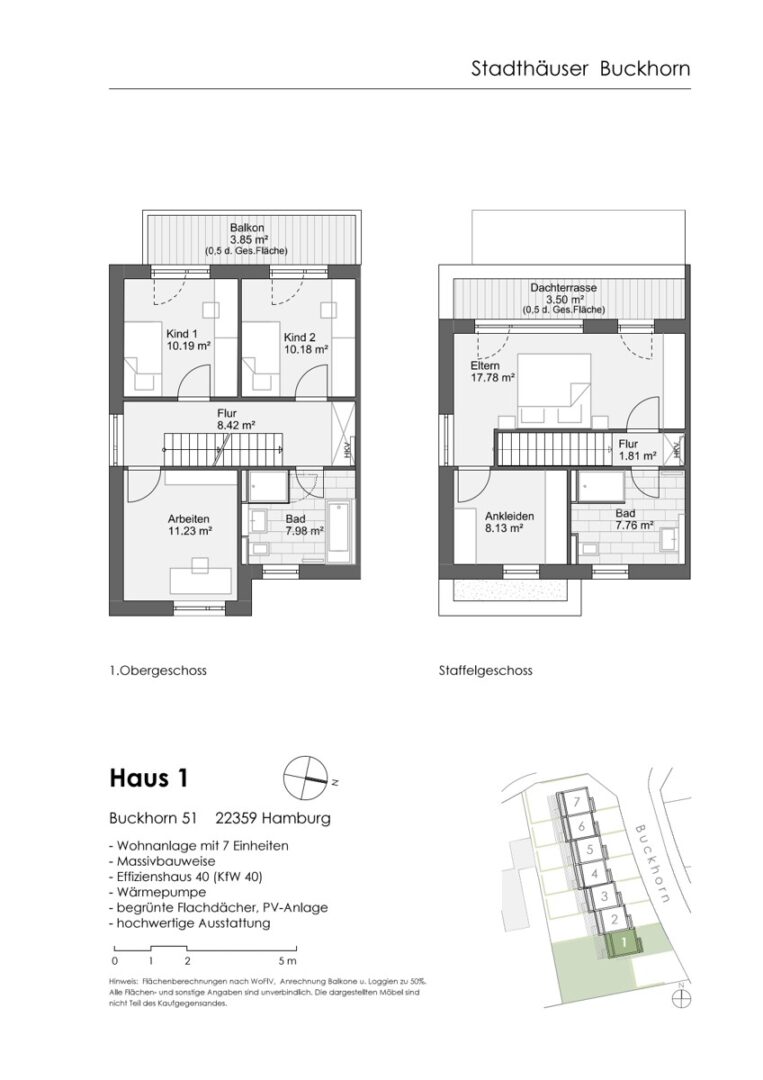 Für höchsten Wohnkomfort sorgt die moderne Haustechnik mit Luft-Wasser-Wärmepumpe und Photovoltaikanlage. Ein weiterer Pluspunkt: Dem Haus ist ein PKW-Stellplatz direkt zugeordnet, der für 17.500 € zusätzlich mit erworben wird – so parken Sie bequem direkt am Haus.