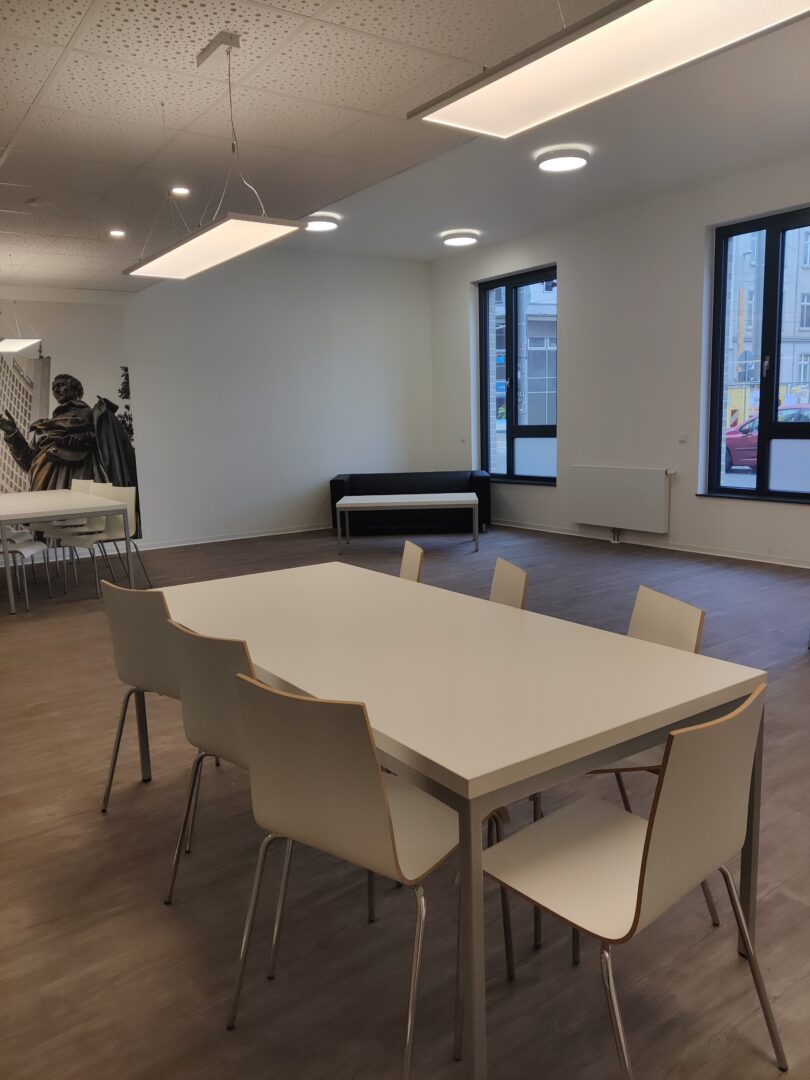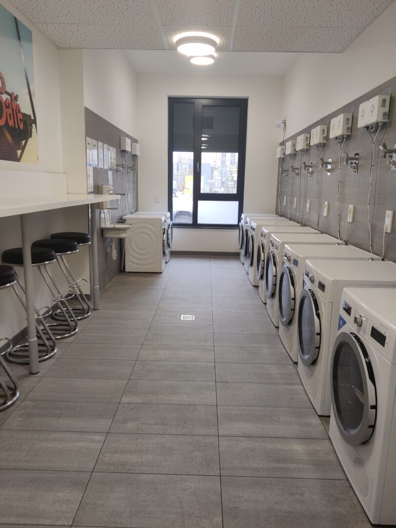 Im Gebäude stehen den Bewohnerinnen und Bewohnern praktische Gemeinschafts-einrichtungen zur Verfügung, darunter ein Wasch- und Trockenraum mit Münzgeräten sowie überdachte Fahrradstellplätze. Ein modern gestalteter Community-Bereich mit Lounge und Arbeitsplätzen lädt zum Lernen, Austauschen und Verweilen ein. Für alle, die ein Auto nutzen, sind auf Anfrage auch PKW-Stellplätze verfügbar.