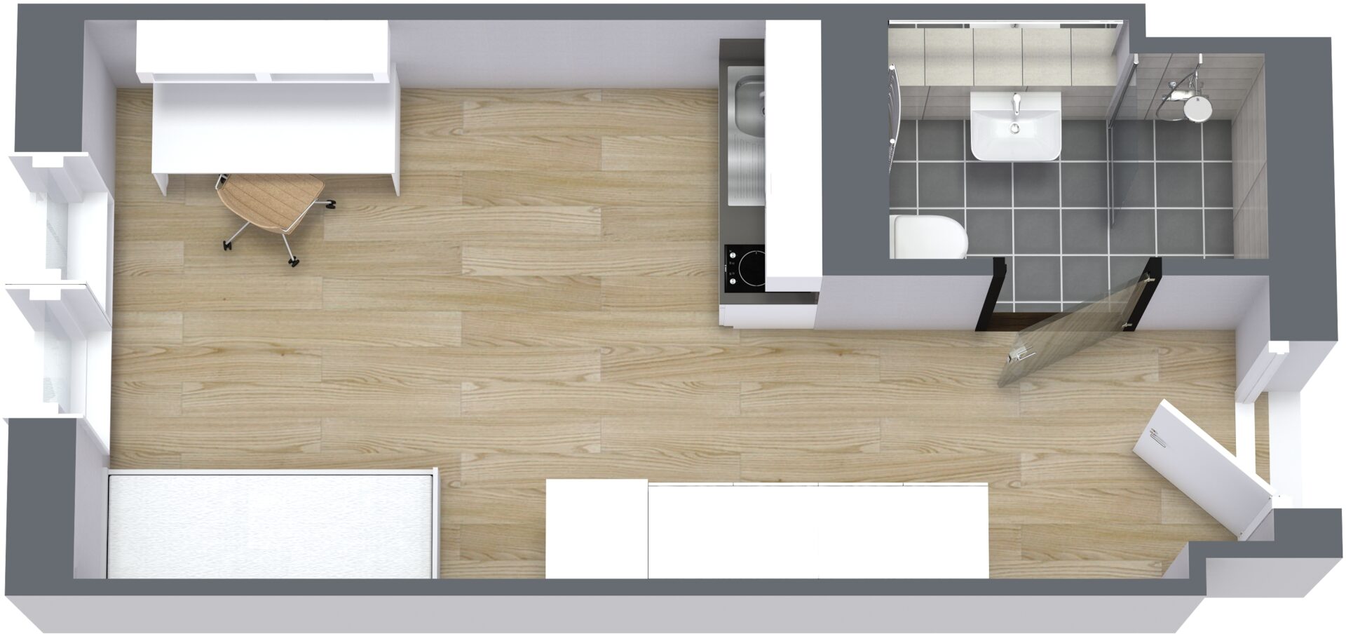 The Hood bietet hochmoderne, komplett möblierte 1 Zimmer Studentenapartments im Herzen von Leipzig. Direkt an der Ecke Kurt Schumacher Straße / Berliner Straße gelegen, umfasst der Neubau 237 Apartments mit Größen zwischen ca. 19,00 m² und 31,00 m².