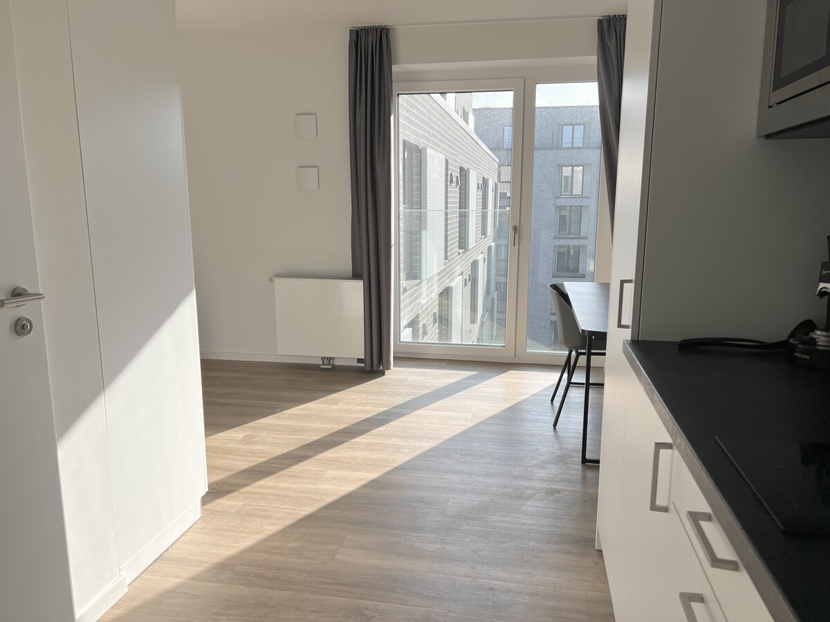 Die integrierte Küchenzeile ist mit allen notwendigen Geräten ausgestattet, darunter ein Kühlschrank, ein Kochfeld, eine Spülmaschine und eine Mikrowelle. Zusätzlich stehen Dir eine Kaffeemaschine, ein Wasserkocher sowie Besteck und Geschirr zur Verfügung – ideal für den direkten Einzug ohne Aufwand.