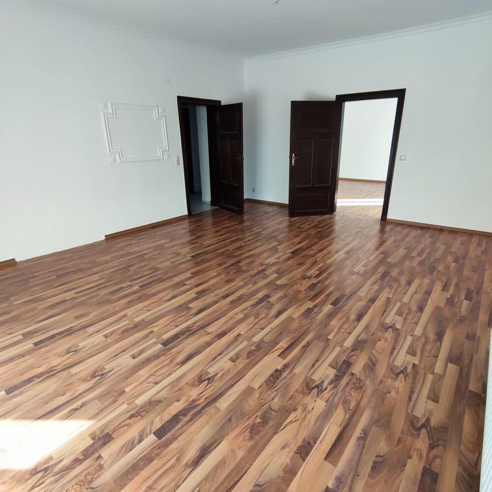 Die gezeigten Wohnräume wirken großzügig und lichtbetont, mit großen Fenstern und ruhigen Wandflächen als solide Basis für unterschiedliche Einrichtungskonzepte.