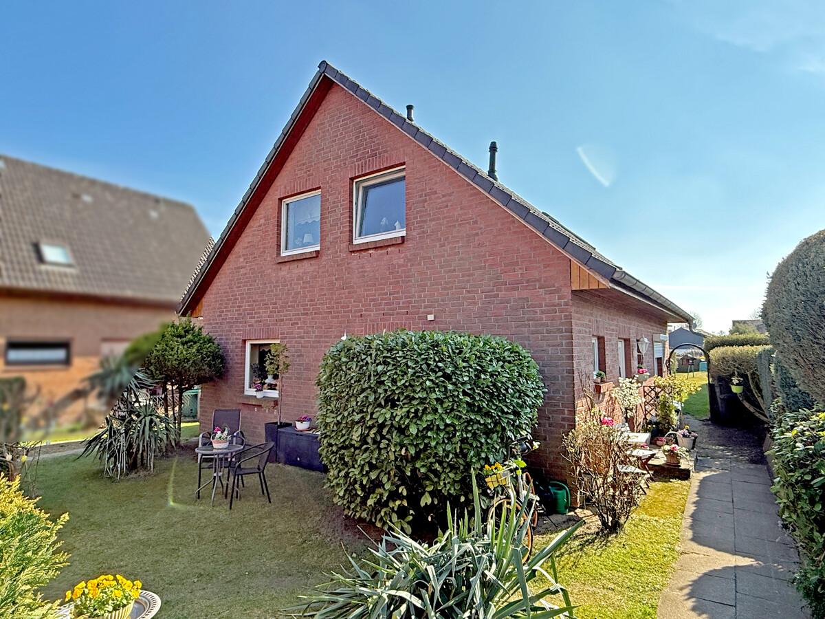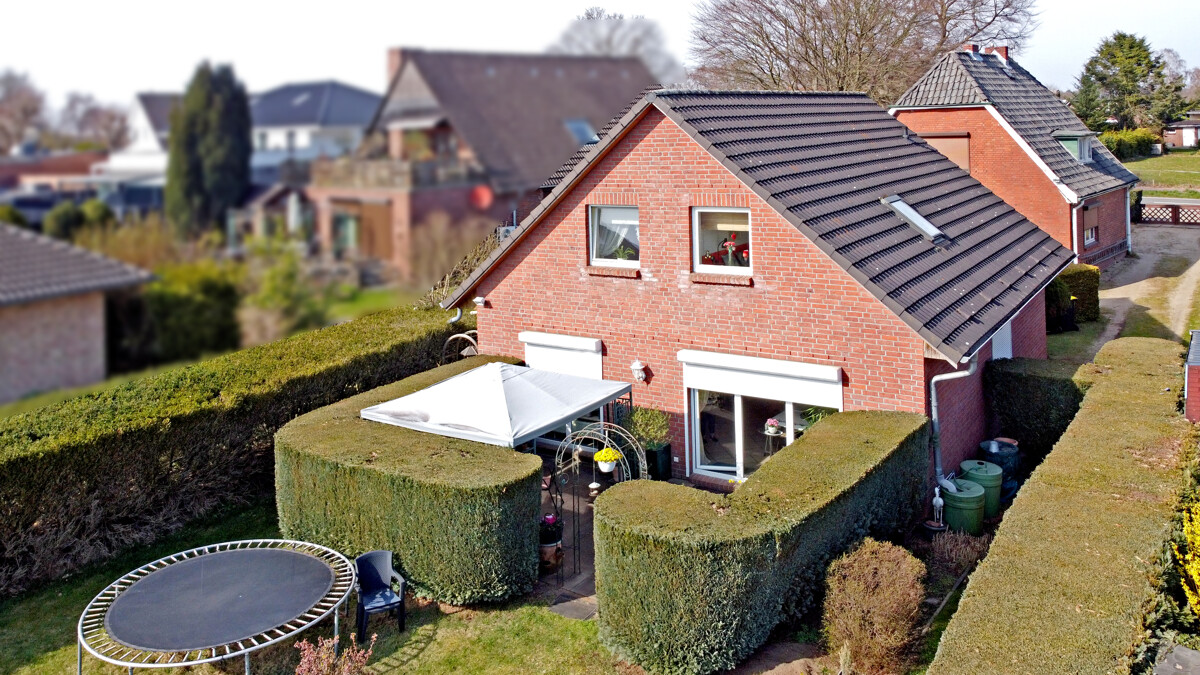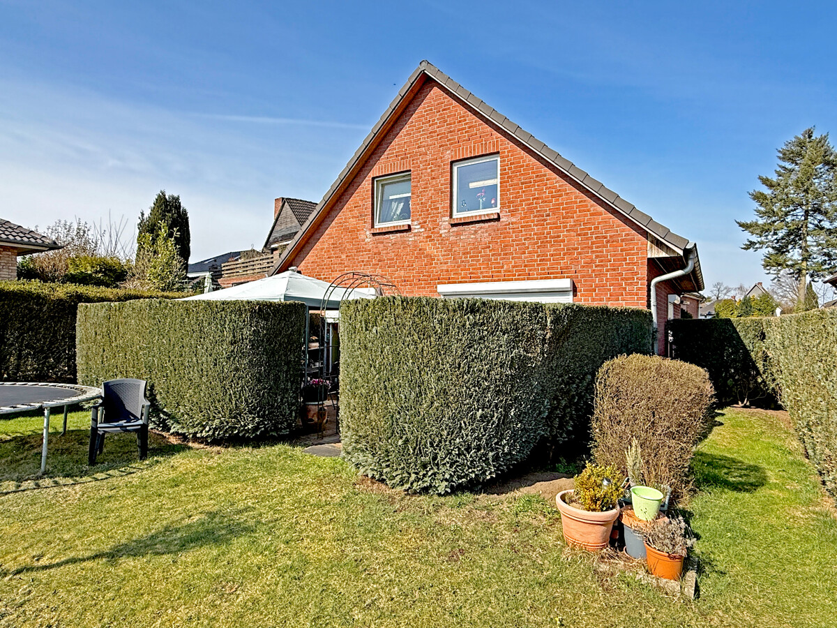 Der Außenbereich mit Terrasse und großzügigem Garten bietet vielfältige Nutzungsmöglichkeiten für Erholung und Freizeit.